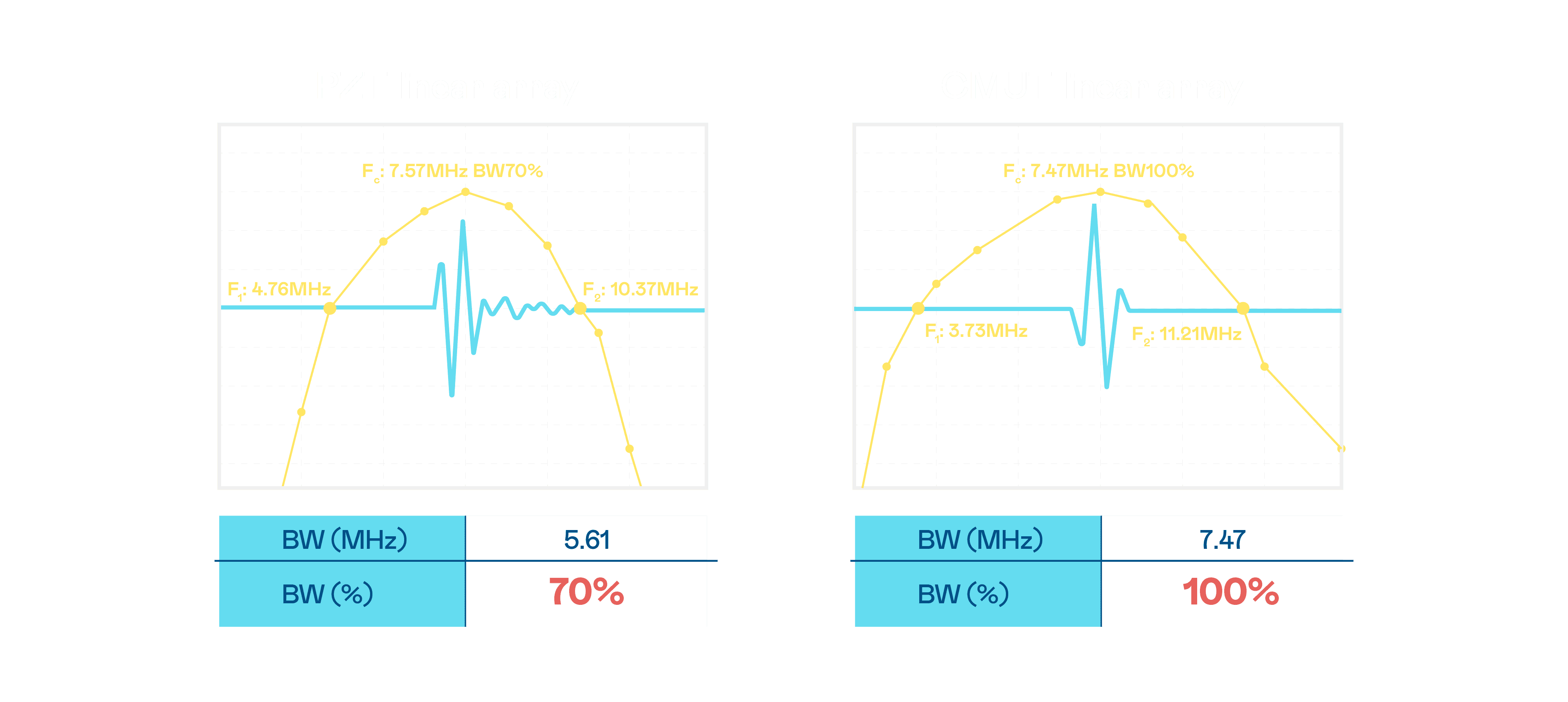 超音波影像的解析度高低,,首先取决于探头能发出的讯号频宽。。。z6尊龙 CMUT 可提供高清晰的超音波讯号,,,提供高频宽、、高灵敏度、、、影像纹理细节更高的超音波影像,,,协助医护人员缩短影像判读时间及利用精准的医疗影像进行诊断。。。。